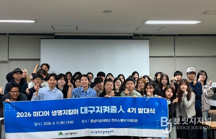 브릿지저널 김진석 기자 | 대구광역시와 대구광역자살예방센터는 4월 11일 오후 1시 영남이공대학교 천마스퀘어에서 지역 대학생 48명이 참여한 가운데 미디어 생명지킴이 ‘대구지켜줌人’ 제4기 발대식을 개최했다.