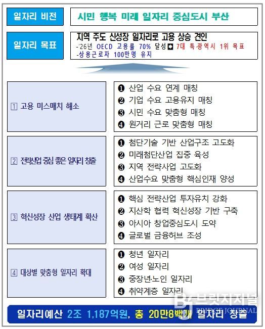 브릿지저널 윤나영 기자 | 부산시는 '시민 행복 미래 일자리 중심도시 부산' 실현을 위한 '2026년 일자리정책 종합계획'을 수립하고 본격적인 추진에 나선다고 밝혔다.