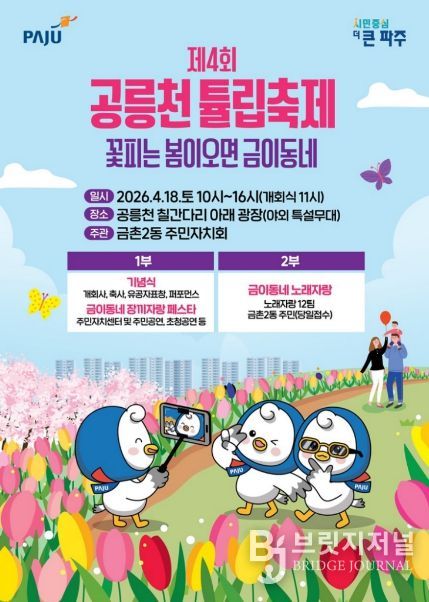 브릿지저널 김경미 기자 | 파주시 금촌2동 주민자치회는 오는 18일 공릉천 칠간다리 아래 광장에서 '제4회 공릉천 튤립축제'를 개최한다.