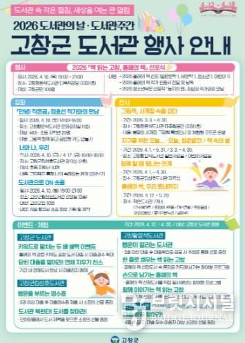 브릿지저널 윤나영 기자 | 고창군도서관이 ‘제62회 도서관주간(12~30일)’을 맞아 ‘2026 책 읽는 고창, 올해의 책 선포식’을 중심으로 군민과 함께 독서문화 확산에 나선다.