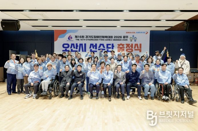 브릿지저널 김경미 기자 | 오산시장애인체육회는 ‘제16회 경기도장애인체육대회 2026 광주’에 참가하는 오산시 선수단 출정식을 지난 10일 오산오색문화체육센터에서 개최했다고 밝혔다.
