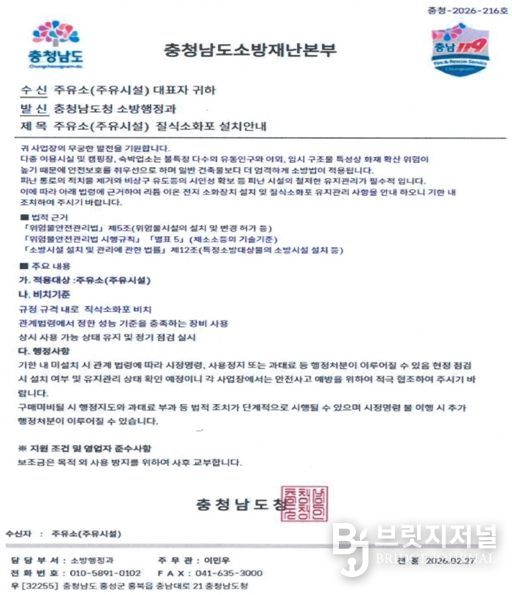 서산소방서는 소방시설 점검이나 안전교육 등 모든 행정 활동은 사전에 공식 공문이나 유선 안내를 통해 진행되며, 현장에서 물품 구매를 강요하거나 금전을 요구하는 경우는 절대 없다고 강조했다.