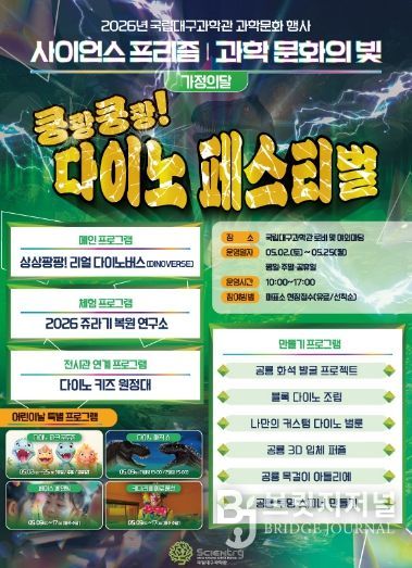 브릿지저널 김진석 기자 | 국립대구과학관은 4월 과학의 달과 5월 가정의 달을 맞이하여 다양한 과학문화 체험 행사와 문화예술 공연을 개최한다.