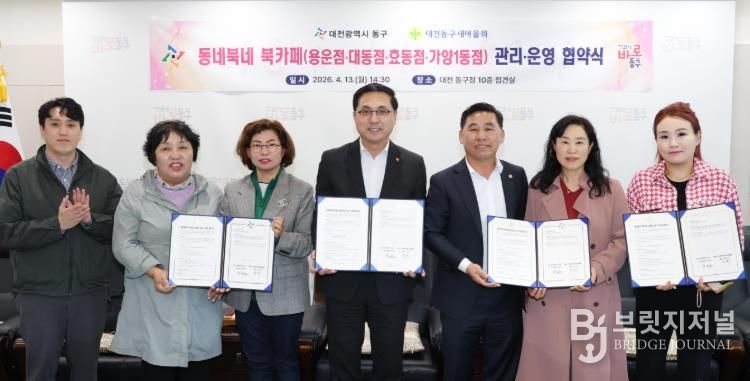 브릿지저널 정보영 기자 | 대전 동구는 13일 구청장 접견실에서 (사)대전 동구새마을회와 ‘동네북(BOOK)네 북카페’의 안정적인 관리·운영을 위한 업무협약을 체결했다고 밝혔다.