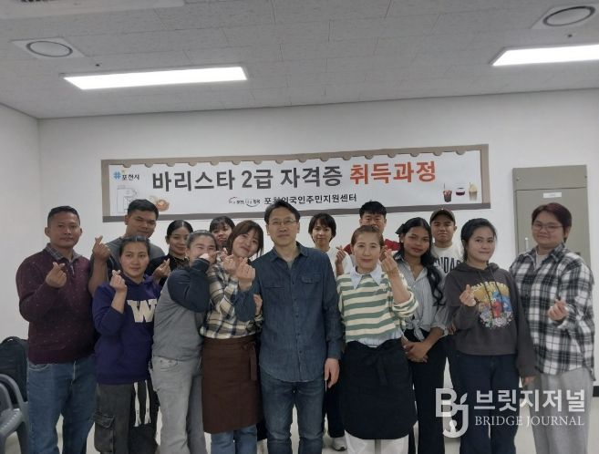 브릿지저널 김경미 기자 | 포천시는 외국인 주민의 안정적인 지역사회 정착과 취업 역량 강화를 위해 운영한 ‘바리스타 2급 자격증 취득과정’을 지난 11일 성공적으로 마무리했다.