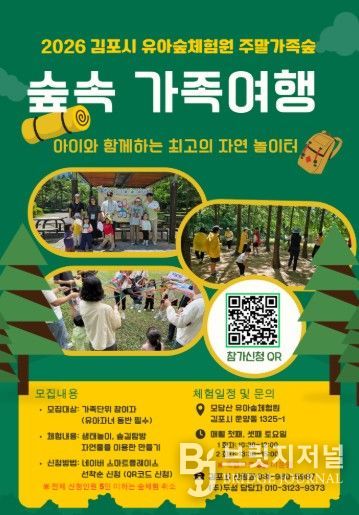 브릿지저널 김경미 기자 | 김포시는 4월 18일부터 ‘유아숲체험원 주말 가족숲 프로그램’을 본격적으로 운영한다고 밝혔다. 이번 프로그램은 유아의 자연 친화적 성장과 가족 단위 체험 기회를 확대하기 위해 마련됐다.