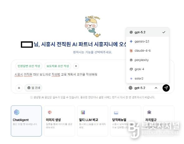 브릿지저널 김경미 기자 | 최근 시흥시 평생학습과 공무원 박씨는 보고서 작성에 소요되는 시간이 크게 줄었다. 통계자료 정리나 기관 대상 발표 자료를 만드는 데에도 자신감이 붙었다. 지난 3월 내부 행정망에 도입된 생성형 인공지능 통합 시스템 ‘시흥지니’ 덕이다.
