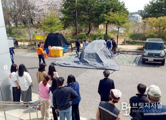 브릿지저널 김경미 기자 | 파주도시공사는 지난 4월 14일 문산행복센터에서 상주기관 및 파주소방서와 함께 전기차 화재 대비 훈련을 실시했다.