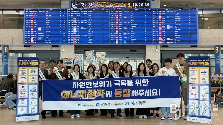 브릿지저널 김경미 기자 | 인천국제공항공사는 15일 인천공항 제1여객터미널 입국장 일대에서 인천광역시, 인천광역시 중구청, 한국에너지공단 인천지역본부 등 유관 기관과 함께‘자원안보위기 극복을 위한 대국민 에너지 절약 캠페인’을 시행했다고 밝혔다.