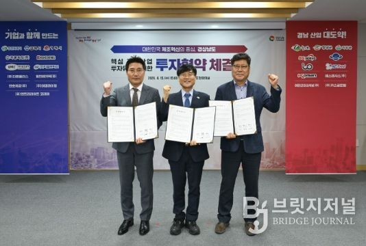 브릿지저널 김경미 기자 | 거제시는 15일 경남도청 도정회의실에서 ㈜더봄플러스, 에스엔시스(주)와 투자협약을 체결했다.