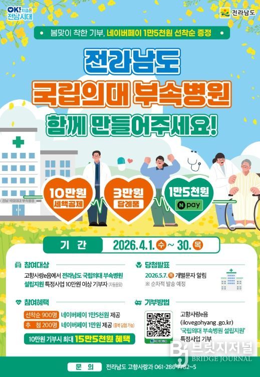 브릿지저널 김경미 기자 | 전라남도가 고향사랑기부제를 활용해 지역 의료 인프라 확충에 나선다.
