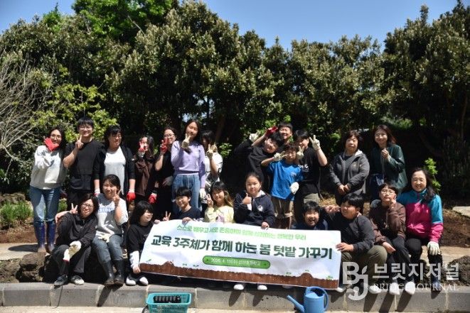 브릿지저널 정보영 기자 | 제주도교육청 성산초등학교는 15일 학교 본관 뒤 텃밭에서 5~6학년 학생과 보호자, 교사가 함께하는 ‘텃밭 가꾸기’를 운영했다.