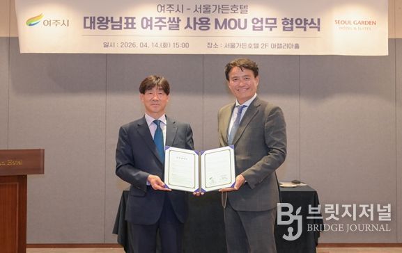 브릿지저널 김경미 기자 | 여주시는 지난 4월 14일 서울 마포구 서울가든호텔 아젤리아홀에서 서울가든호텔과 ‘대왕님표 여주쌀 사용 확대 및 공동 협력을 위한 업무협약(MOU)’을 체결했다.
