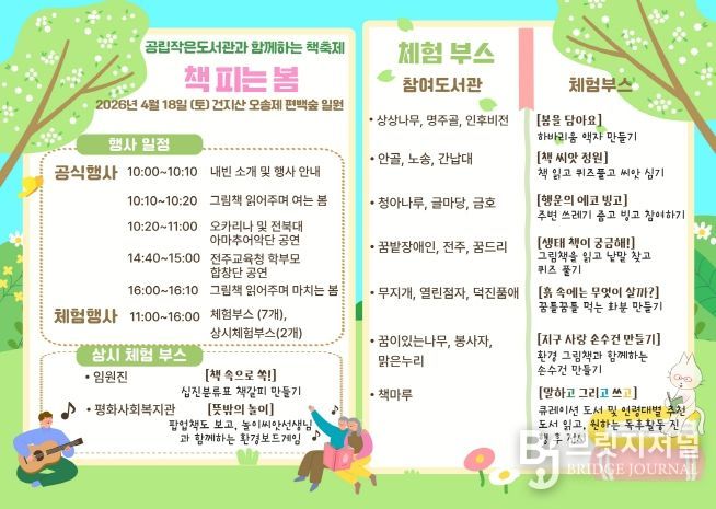 브릿지저널 윤나영 기자 | 전주시 26개 공립작은도서관들이 힘을 모아 시민들에게 따스한 봄날, 책과 함께하는 특별한 추억을 선사하기로 했다.