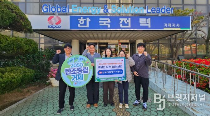 브릿지저널 김경미 기자 | 거제시는 지역의 탄소중립 실천문화 확산을 위해 추진 중인 ‘2026년 이달의 탄소중립 실천기관’4월 실천기관으로 한국전력공사 거제지사를 지정했다고 16일 밝혔다.