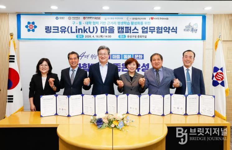 브릿지저널 정보영 기자 | 대전 유성구는 16일 원신흥동·상대동·신성동 주민자치회와 목원대학교·대덕대학교가 ‘링크유(LinkU) 마을캠퍼스’ 업무 협약을 체결했다고 밝혔다.