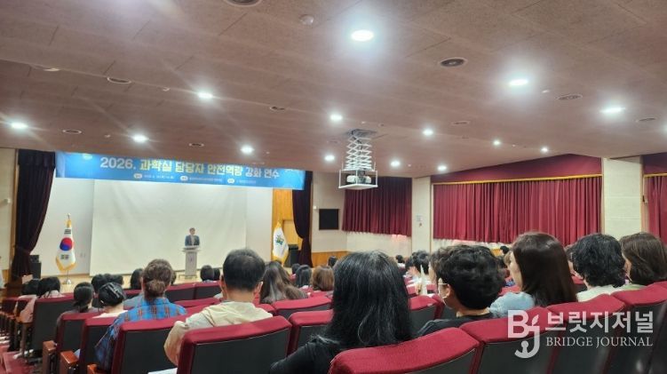 브릿지저널 김경미 기자 | 청주교육지원청은 지난 16일, 청주교육지원청 대회의실에서 관내 초·중학교 과학실 담당자 145명을 대상으로 ‘2026학년도 과학실 담당자 안전역량 강화 연수’를 실시했다.