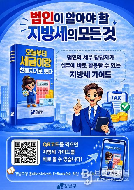 브릿지저널 김경미 기자 | 꿈이 모이는 도시, 미래를 그리는 강남구가 법인의 세무·회계 담당자가 지방세 업무를 한눈에 이해할 수 있도록 실무형 안내서 '오늘부터 세금이랑 친해지기로 했다'를 전자책으로 제작해 구 홈페이지에 게시했다.