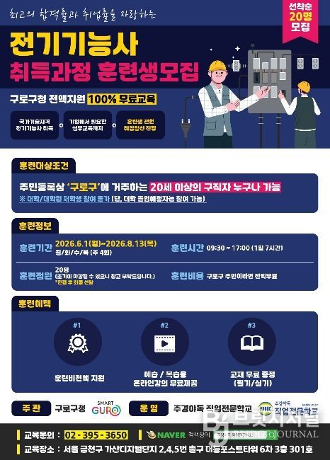 브릿지저널 김경미 기자 | 구로구가 전기기능사 취득 과정 훈련생을 5월 29일까지 모집한다.