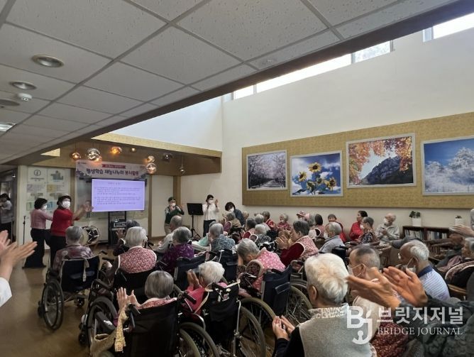 브릿지저널 김경미 기자 | 용인특례시는 평생학습관 재능나누미 교육 수강생들이 16일 처인구 역북동에 있는 대한간호노인요양원을 찾아 노인들을 대상으로 인지기능 향상을 위한 프로그램을 진행했다고 17일 밝혔다.