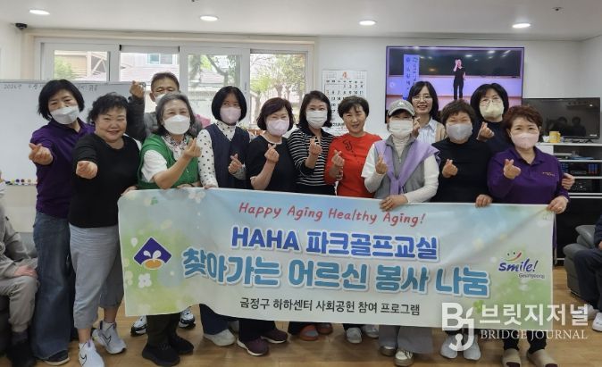 브릿지저널 윤나영 기자 | 부산 금정구 하하센터(금사동 소재)는 지난 14일 신노년 건강강좌 파크골프교실 수강생들이 관내 어르신 주간보호센터를 방문해 찾아가는 재능기부 봉사활동을 실시했다고 밝혔다.