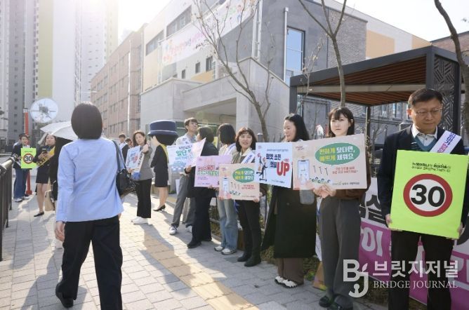 브릿지저널 김경미 기자 | 양주시는 지난 15일 오전 옥정호수초등학교 일원에서 어린이보호구역의 불법 주정차 근절 및 전동킥보드 안전 이용 합동 캠페인을 펼쳤다.