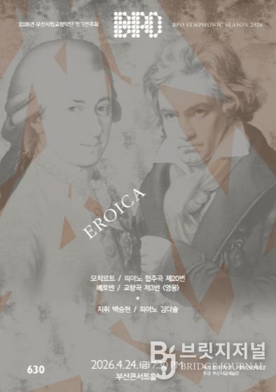 브릿지저널 윤나영 기자 | 부산시립교향악단이 오는 4월 24일 오후 7시 30분, 부산콘서트홀에서 제630회 정기연주회 '에로이카(EROICA)'를 개최한다. 이번 공연은 고전주의의 균형에서 출발해 낭만주의의 확장으로 나아가는 흐름 속에서, 불안과 긴장을 넘어서는 인간의 의지를 조명하는 무대로 마련된다.