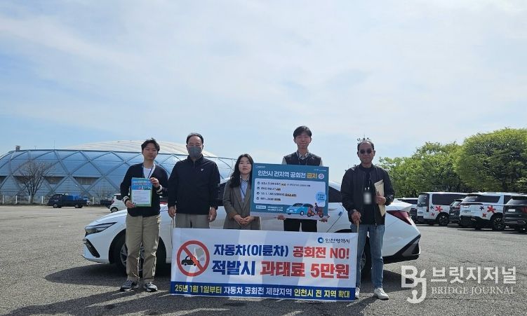 브릿지저널 김경미 기자 | 인천 미추홀구는 2025년부터 한층 강화된 ‘자동차 공회전 제한’을 알리기 위해 16일 오전 문학경기장에서 인천시와 합동으로 공회전 단속 및 홍보 캠페인을 실시했다.