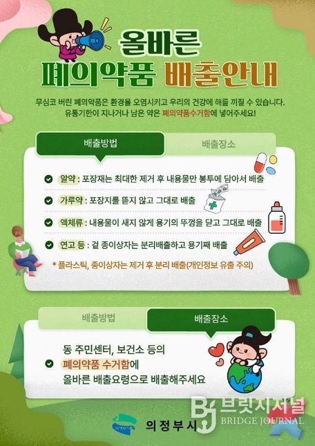 브릿지저널 김경미 기자 | 의정부시는 일상생활에서 발생하는 유해 폐기물인 폐의약품을 안전하게 수집‧처리하기 위해 관내 동 주민센터와 공동주택 등 총 31개소에 ‘폐의약품 수거함’을 설치했다.