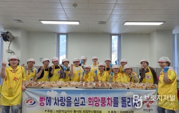브릿지저널 김경미 기자 | 의정부시는 4월 15일 대한적십자사봉사회 의정부시협의회가 북부봉사관 2층 빵나눔터에서 ‘빵에 사랑을 싣고 희망풍차를 돌리자’ 제빵봉사 2회차 활동을 진행했다고 밝혔다.