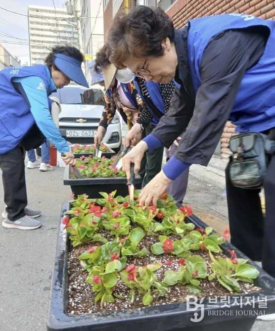 브릿지저널 김경미 기자 | 수원시 팔달구 우만2동 바르게살기운동위원회는 지난 15일, 상습 무단투기지역 지킴이 활동의 일환으로 가로경관과 골목환경 개선을 위한 초화류를 식재 활동을 전개했다.