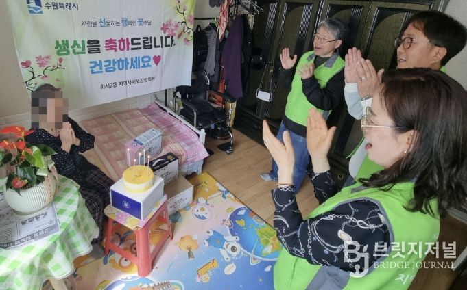 브릿지저널 김경미 기자 | 수원시 팔달구 화서2동 지역사회보장협의체는 지난 16일, 관내 홀몸 어르신 가정을 직접 방문해 생신을 축하하고 안부를 살피는 ‘선행꽃(사랑을 선물하는 행복한 꽃배달)’ 사업을 추진하며 지역사회에 훈훈한 감동을 전했다.