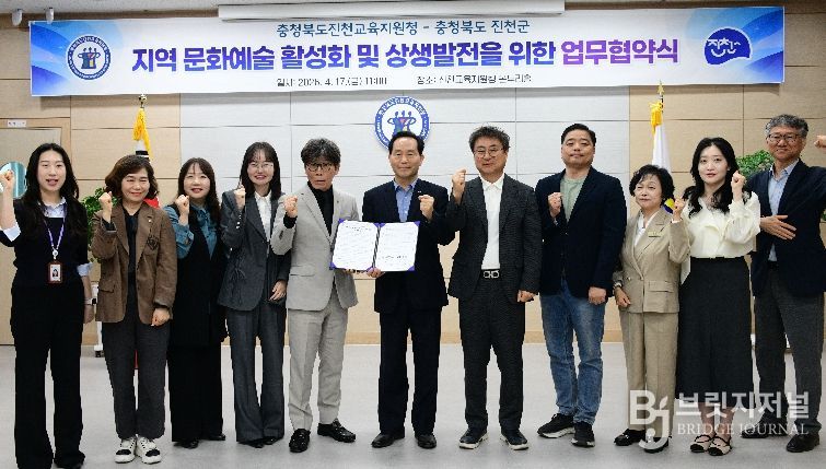 브릿지저널 김경미 기자 | 충청북도진천교육지원청과 진천군은 4월 17일 지역 문화예술 활성화 및 상생발전을 위한 업무협약(MOU)을 체결했다.