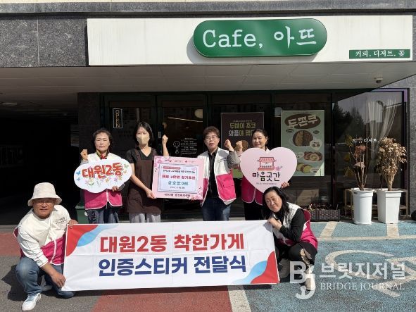 브릿지저널 김경미 기자 | 오산시 대원2동은 지난 16일 지역 내 카페 ‘아뜨’를 ‘착한날개(착한가게)’ 14호점으로 지정하고 인증스티커를 전달했다고 밝혔다.
