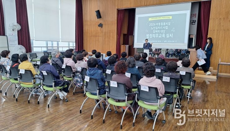 브릿지저널 윤나영 기자 | 서부다함께돌봄센터 거점통합사업팀(센터장 이안나)은 4월 9일, 울산광역시동구노인복지관(관장 류현태) 2층 대강당에서 ‘다함께육아지원사업(노인역량활용사업)’참여자 30명을 대상으로 법정의무교육을 실시했다.