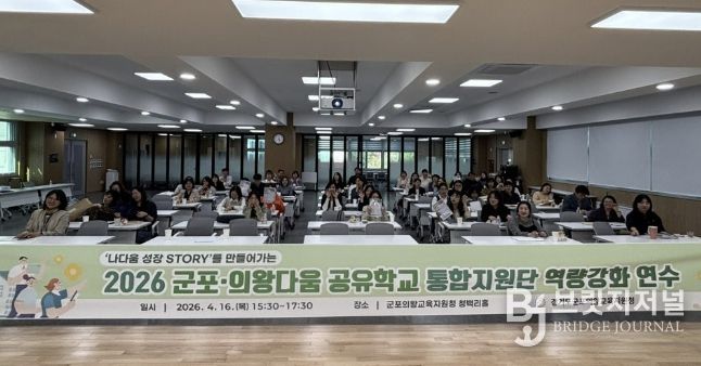 브릿지저널 김경미 기자 | 군포의왕교육지원청은 2026년 군포의왕다움 공유학교 운영의 내실화를 위해 4월 16일 ‘통합 지원단 역량강화 워크숍’을 운영하며, 지역 기반 교육 혁신을 선도할 전문 지원체계 구축에 나선다.