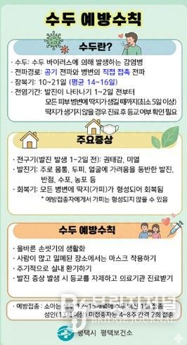 브릿지저널 김경미 기자 | 평택시는 최근 전국적으로 수두 환자가 증가하는 가운데, 관내에서도 수두 신고가 지속됨에 따라 집단시설 및 가정 내 예방수칙 준수를 당부했다.