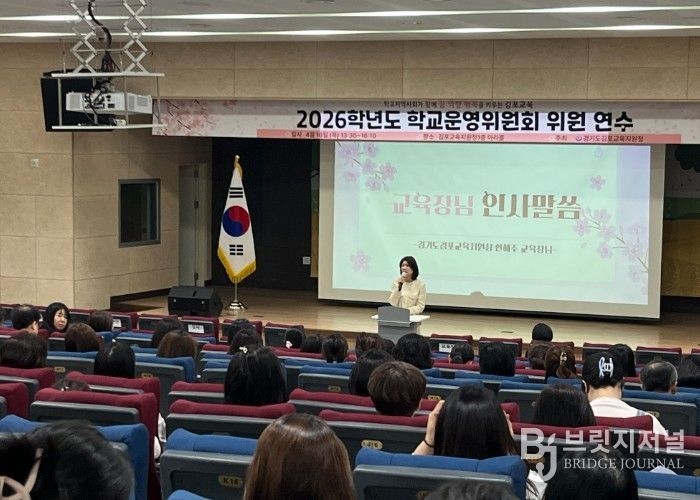 브릿지저널 김경미 기자 | 경기도김포교육지원청은 4월 16일 아라홀에서 초·중·고 및 특수학교 학교운영위원회 학부모위원과 지역위원을 대상으로 ‘2026 학교운영위원회 위원 연수’를 실시했다.