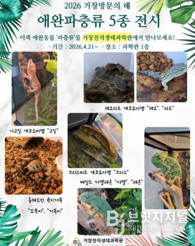 브릿지저널 김경미 기자 | 거창군은 거창천적생태과학관에서 2026년 ‘거창방문의 해’를 맞아 오는 21일부터 어린이와 학생, 가족 관람객을 대상으로 이색 애완 파충류 전시를 개최한다고 밝혔다.