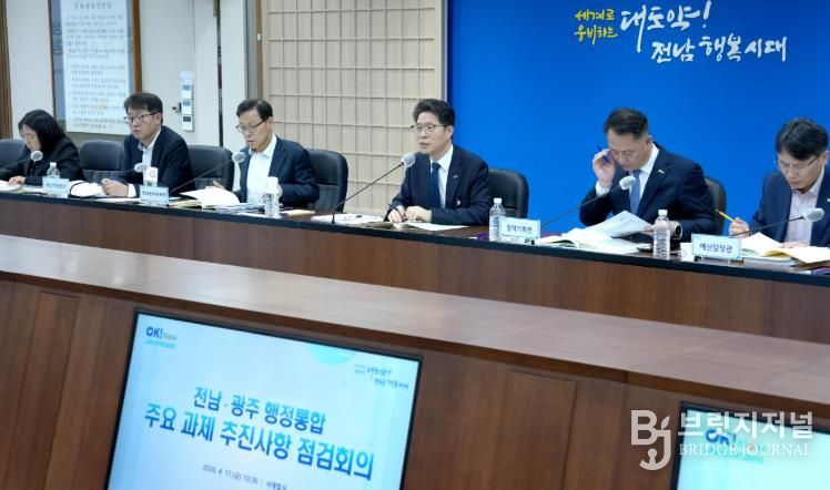 브릿지저널 김경미 기자 | 전라남도는 17일 도청 서재필실에서 전남·광주 행정통합 주요 과제 추진상항 점검회의를 열어 오는 7월 1일 출범하는 전남광주통합특별시의 성공적 탄생에 총력을 기울이기로 했다.