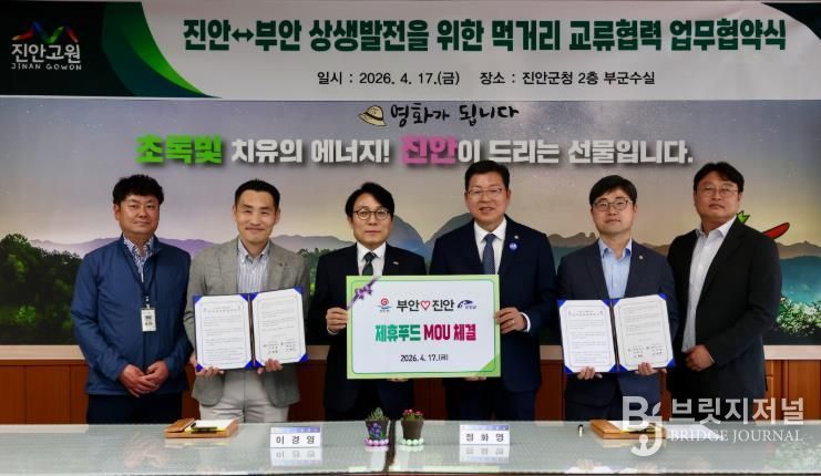 브릿지저널 윤나영 기자 | 부안군은 17일 지역 간 먹거리 교류 활성화와 로컬푸드 경쟁력 강화를 위해 진안군과 먹거리 교류협력 업무협약을 체결했다고 밝혔다.
