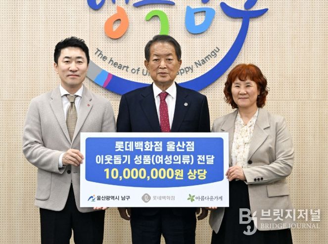 브릿지저널 윤나영 기자 | 롯데백화점 울산점은 17일 남구청을 방문해 관내 취약계층 지원을 위한 1,000만 원 상당의 의류 60여 벌을 전달했다.