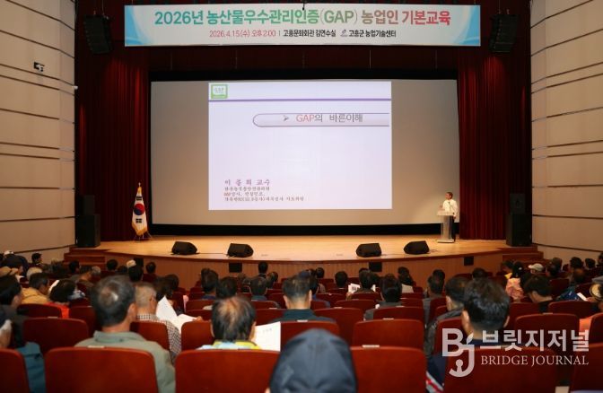 브릿지저널 김경미 기자 | 고흥군은 지난 15일 고흥문화회관 김연수실에서 지역 농업인 344명이 참석한 가운데 2026년 농산물우수관리(GAP) 인증 농업인 기본교육을 실시했다고 밝혔다.