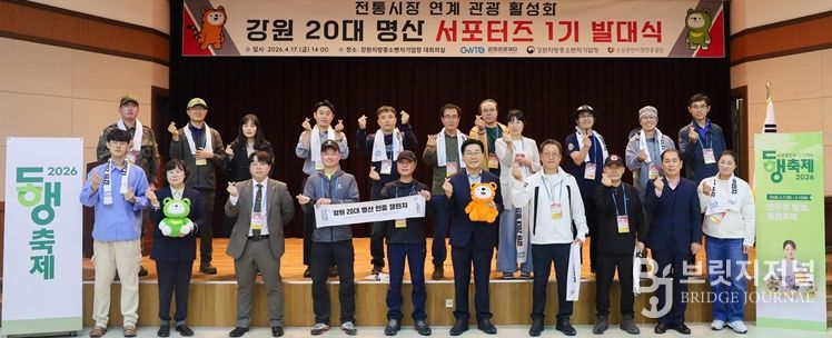 브릿지저널 윤나영 기자 | 강원관광재단, 강원지방중소벤처기업청, 소상공인시장진흥공단 강원지부은 ‘2025-2026 강원 방문의 해’를 맞아 강원 20대 명산 홍보와 전통시장과 연계를 통한 지역 경제 활성화를 위해 4월 17일 14시, 강원지방중소벤처기업청 대회의실에서 ‘강원 20대 명산 서포터즈 1기’ 발대식을 개최했다.