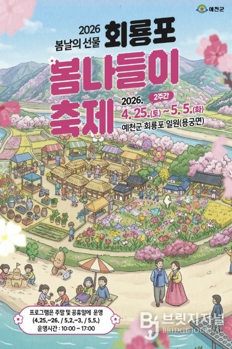 브릿지저널 정보영 기자 | 예천군은 오는 4월 25일부터 5월 5일까지 용궁면 회룡포 일원에서 '2026 회룡포 봄나들이 축제'를 개최한다.