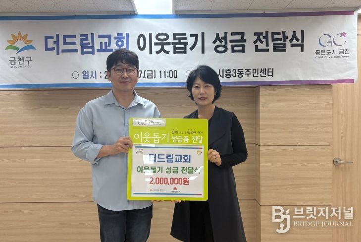 브릿지저널 김경미 기자 | 금천구는 지난 17일 시흥3동에 소재한 더드림교회에서 관내 저소득층을 위해 성금 200만 원을 기부했다고 밝혔다.