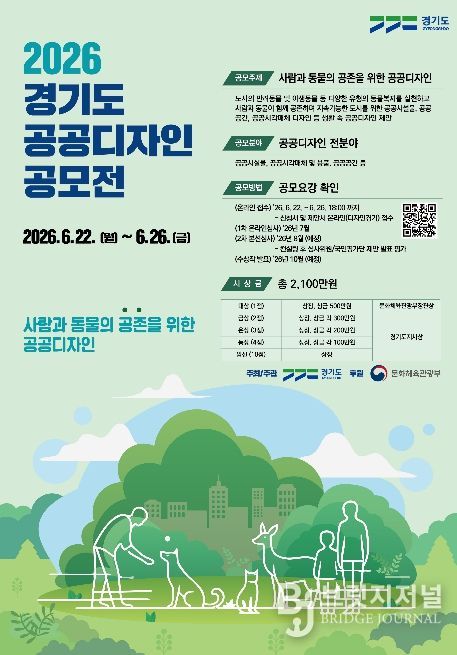 브릿지저널 김경미 기자 | 경기도가 ‘사람과 동물의 공존을 위한 공공디자인’이란 주제로 제20회 ‘2026년 경기도 공공디자인 공모전’을 6월 22일부터 26일까지 개최한다.