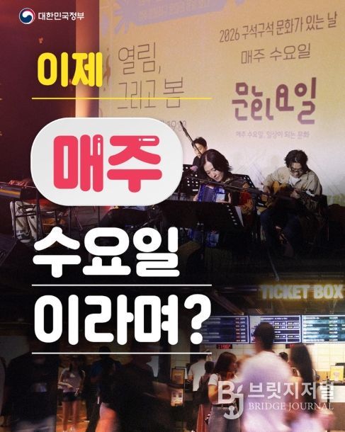 브릿지저널 김경미 기자 | 더 많은 분들이 일상에서 문화를 누리시도록 각종 혜택을 드리는 문화가 있는 날.