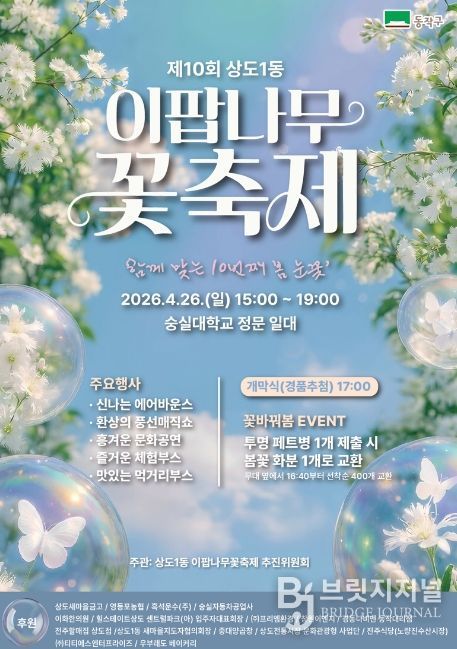 브릿지저널 김경미 기자 | 동작구는 오는 26일 숭실대학교 정문 일대(상도로 369)에서 ‘제10회 이팝나무 꽃 축제’를 개최한다고 밝혔다.
