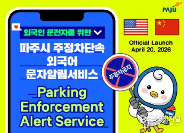 브릿지저널 김경미 기자 | 파주시는 4월 20일부터 외국인 운전자를 대상으로 한 ‘주정차 단속 외국어 문자 알림 서비스’를 시행한다.